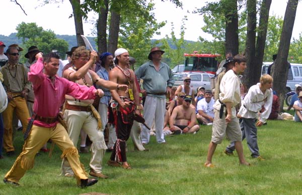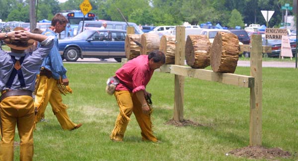 Getting ready for the knife and hatchet throwing competition. |