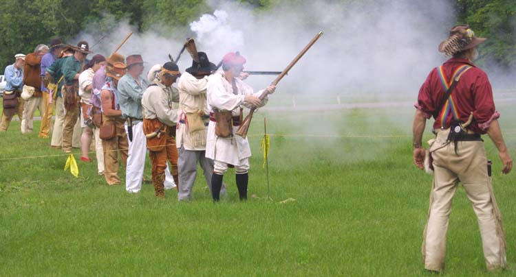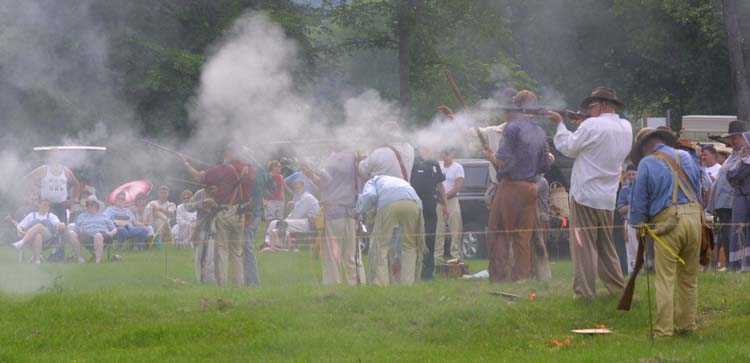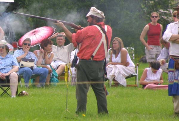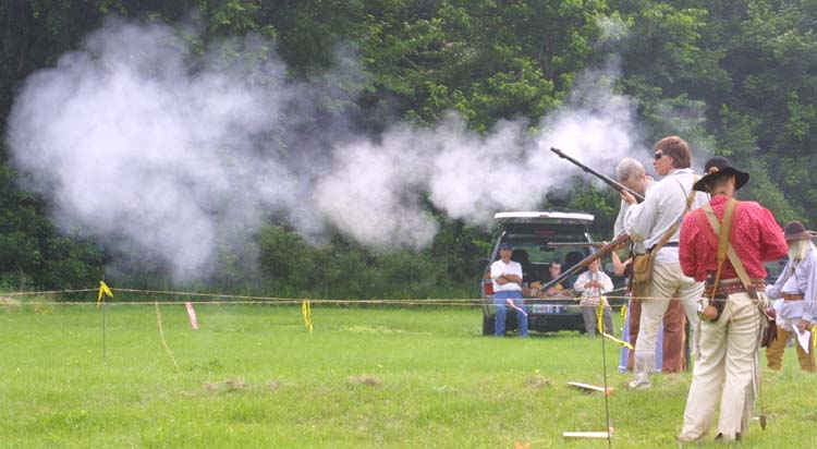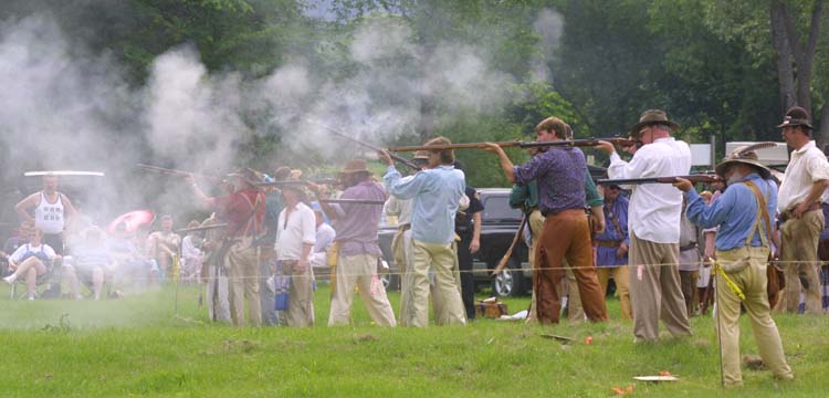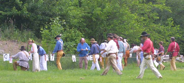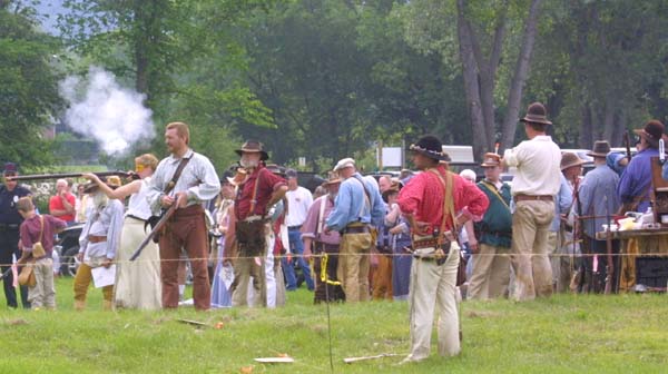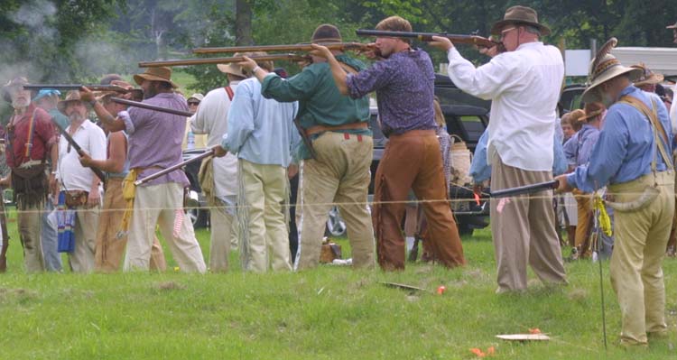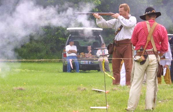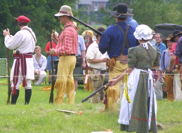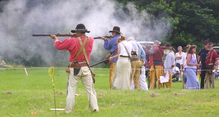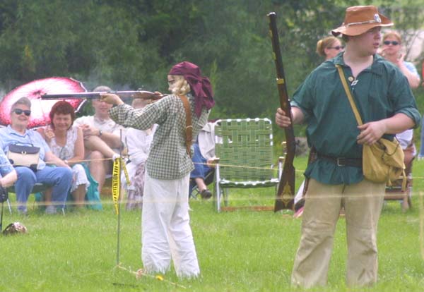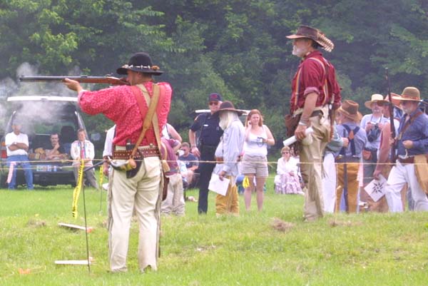 on the firing line and shoot. Several women, in period costumes, also attended.