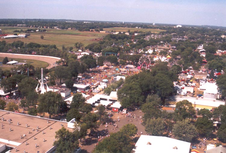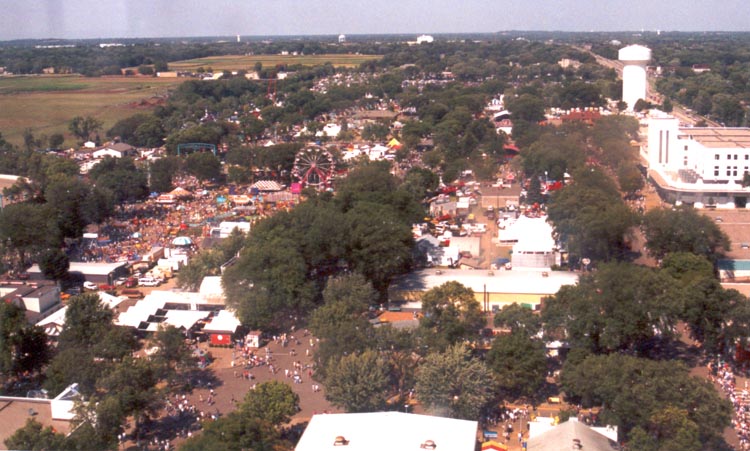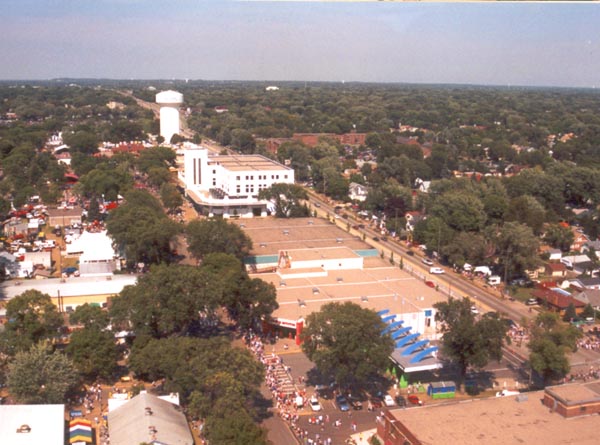 Left: The grandstand, and the fairgrounds. Below: The city of St. Paul, as seen from high above the fair. |