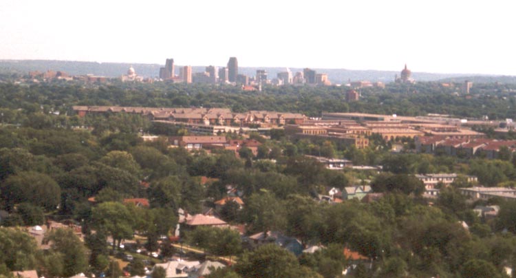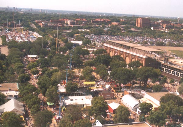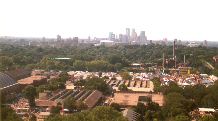 Left: A look over towards the technology center. Below: The city of Minneapolis, as seen from high above the fair.. |