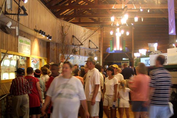 a performance stage near the center.