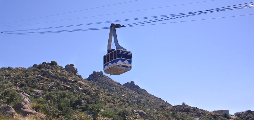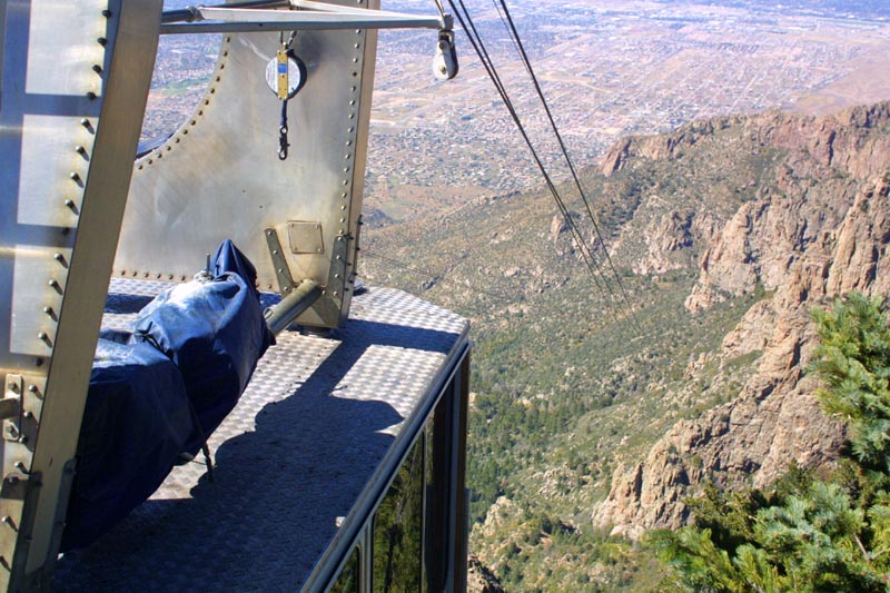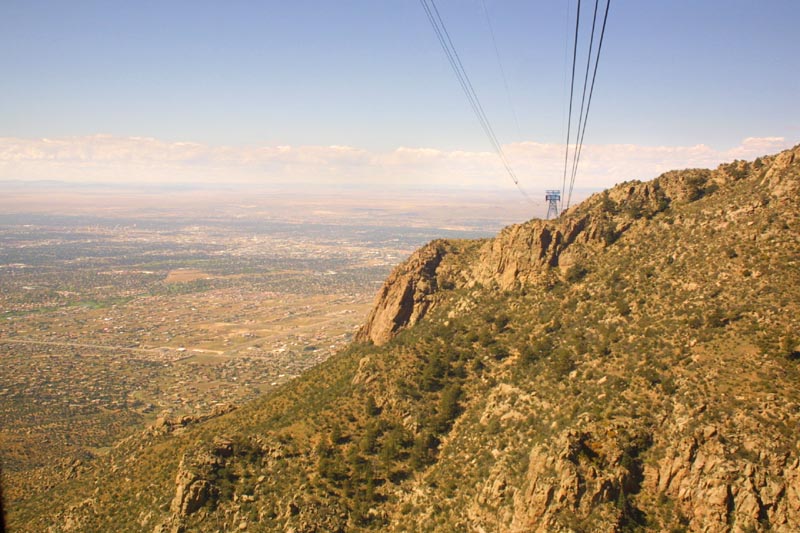 Sandia Peak sits just outside of Albuquerque, and rears up about two