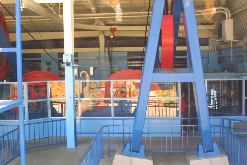 A look at the tram, coming down the mountain.