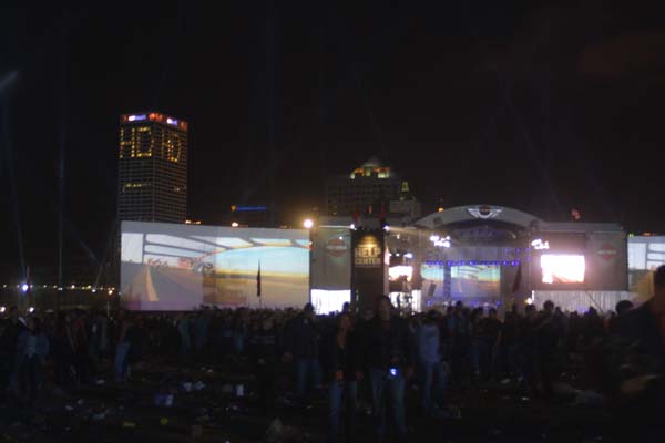 screens of scenes of the new Harley davidson motorcycles rumbling down the