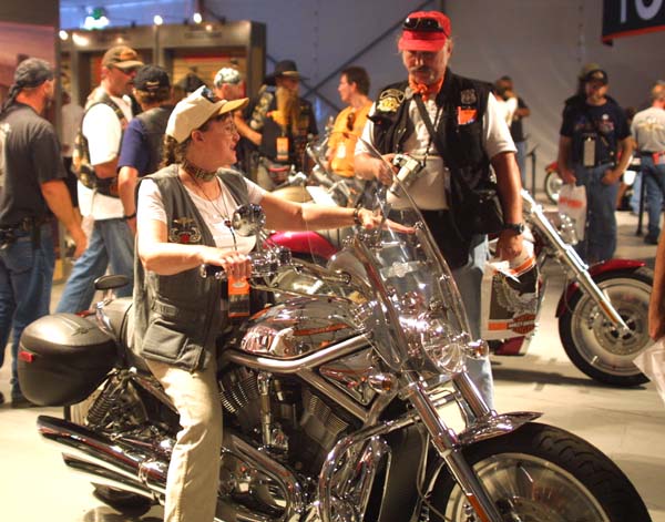 | Looking over a selection of the new V-Rod models.