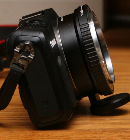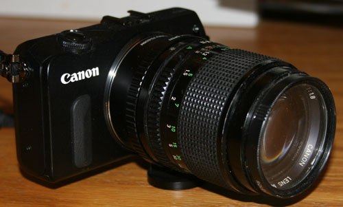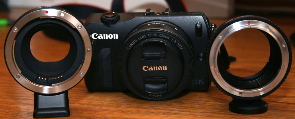 lenses. To the left is a photo of the EOS-M with an FD adapter and