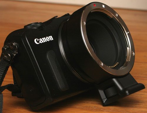 to the standard EOS mount. It can do this because the EOS-M has no mirror box, and no pentaprism,
